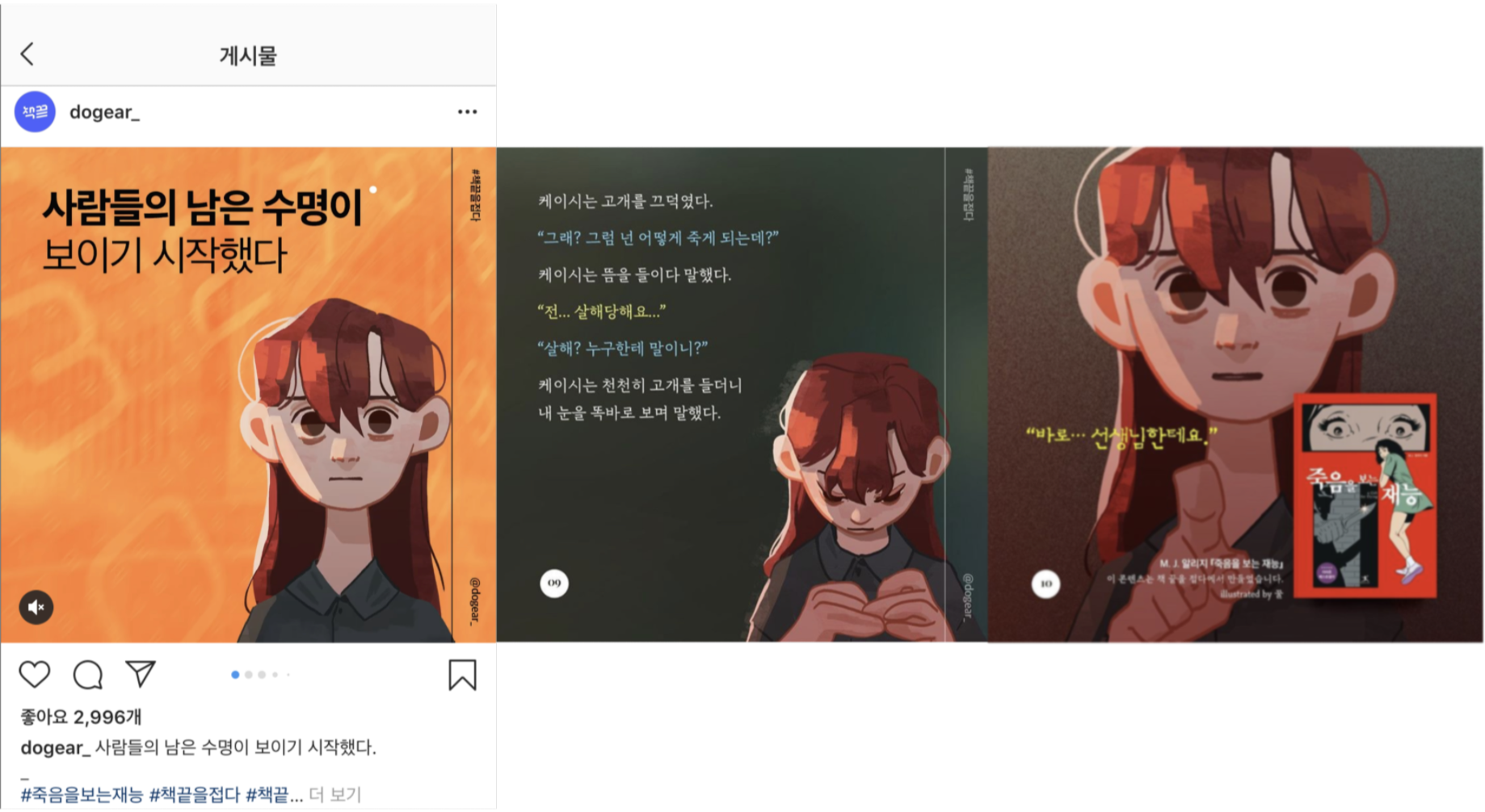 보통 구성은 책의 내용을 일부 요약해서 컷툰 형식으로 보여준다.